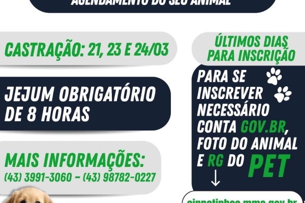 Últimos dias! Garanta a castração gratuita do seu pet