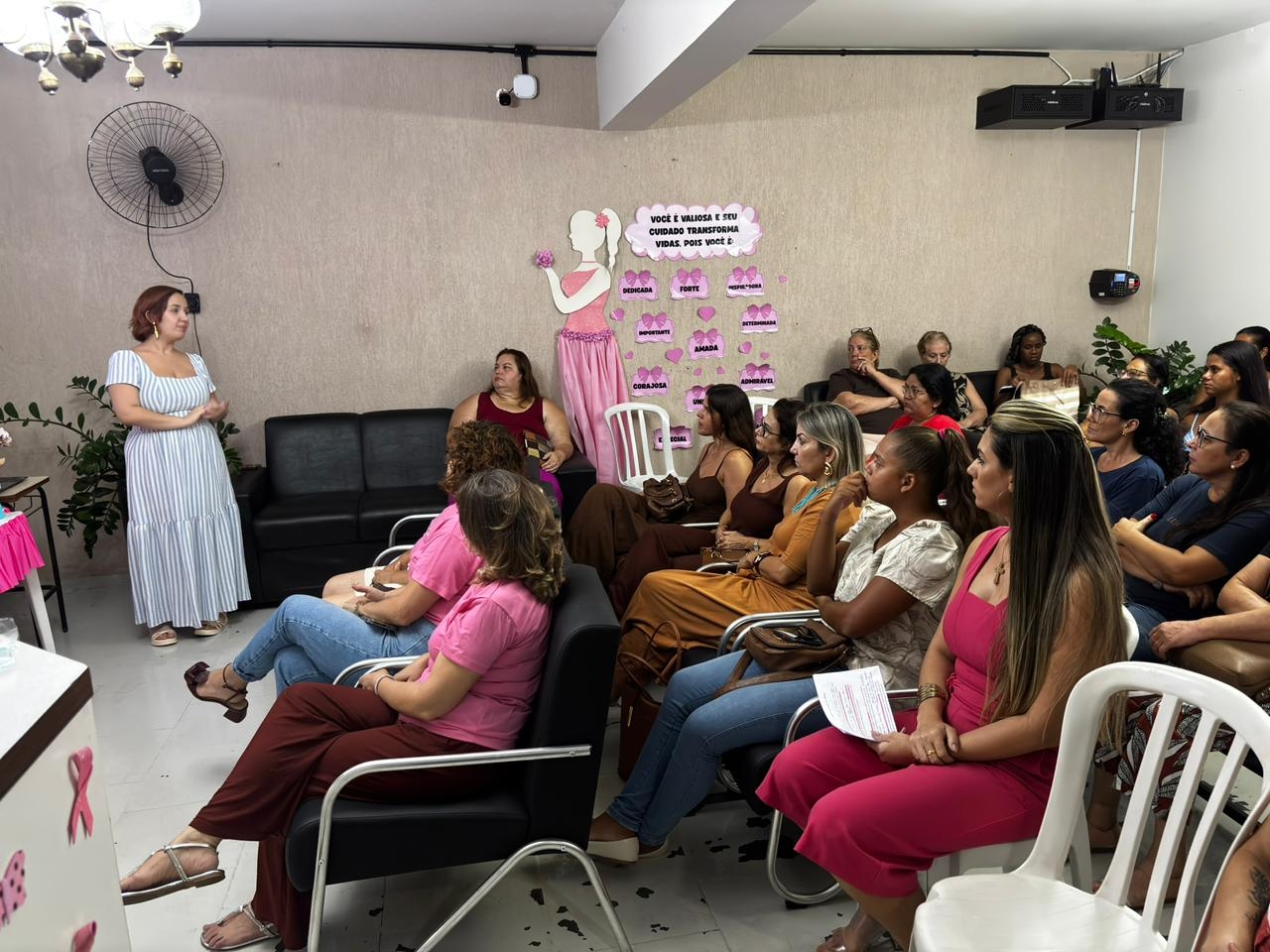 A programação foi repleta de serviços e atividades voltadas para a saúde feminina, incluindo coleta de preventivo, solicitação de mamografias, além de palestras com a Dra. Patrícia sobre saúde da mulher e com a psicóloga Thiele abordando a violência contra a mulher.