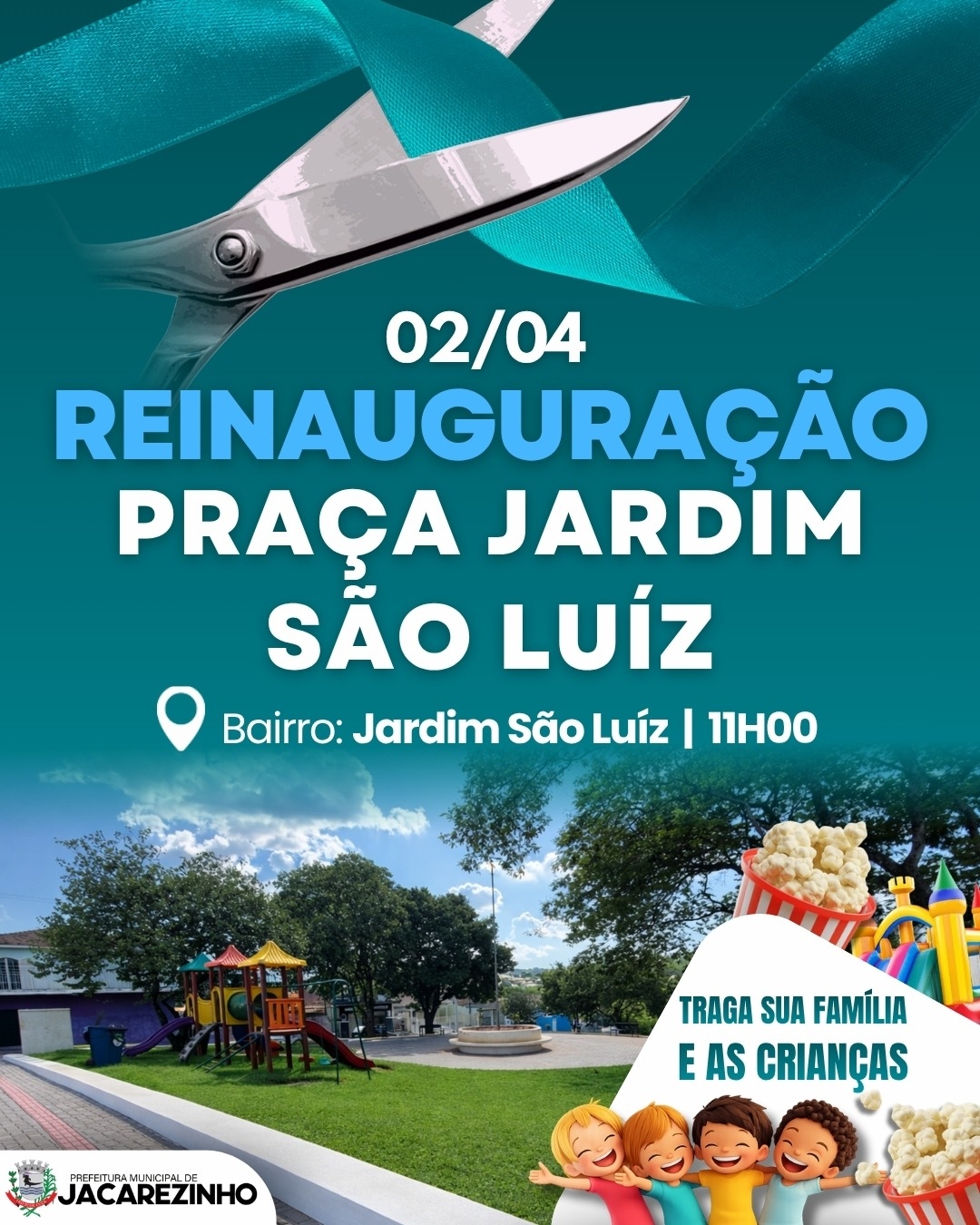 O evento integra a programação oficial do aniversário de 126 anos de Jacarezinho, celebrando o cuidado com os espaços públicos e a qualidade de vida da comunidade. E para deixar esse momento ainda mais especial, terá brinquedos, pipoca e algodão doce para todos!
