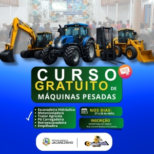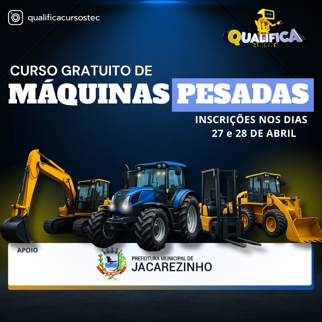 Estão abertas as inscrições para o Curso GRATUITO de Máquinas Pesadas em Jacarezinho!