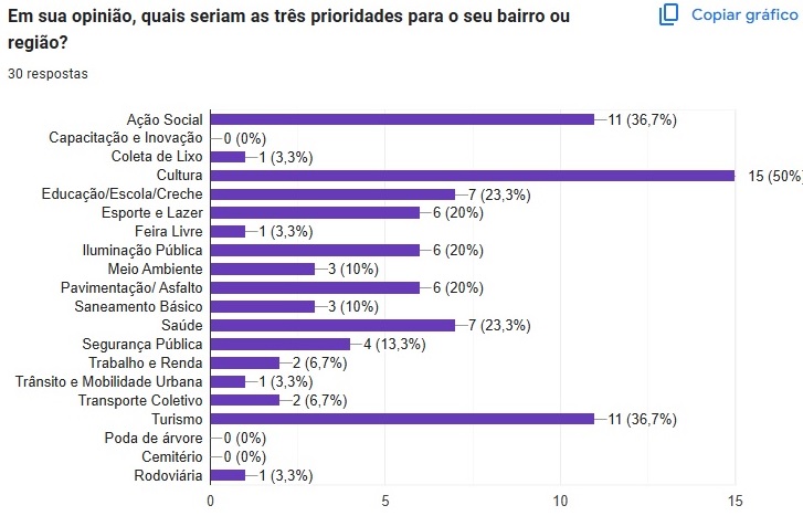 - Escolhi "Cultura e Turismo" porque, como artista, vejo o quanto a arte transforma e conecta as pessoas. A cultura valoriza nossa identidade, dá voz à comunidade e abre portas para muitos talentos. Já o turismo pode movimentar a economia local, trazer mais visibilidade pro bairro e gerar oportunidades pra todo mundo. Acho que investir nessas áreas é cuidar das pessoas e do lugar onde a gente vive