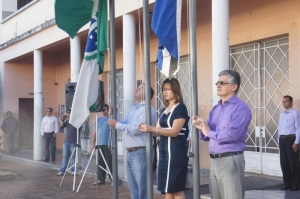 O hasteamento do pavilhão nacional, estadual e municipal teve início às 7h30 com a apresentação de atiradores do Tiro de Guerra 05/007 e membros da Polícia Militar. "É uma data muito importante para o nosso país e quero agradecer a presença de todos que vieram acompanhar a solenidade de hasteamento das bandeiras", enfatiza Dr. Sérgio.