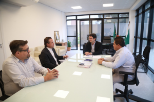O prefeito Marcelo Palhares foi a Curitiba em busca de auxílio para obras que minimizem o impacto das chuvas no Município. Ele esteve, na manhã desta quarta-feira (dia 18), na Secretaria das Cidades, em reunião com o secretário Eduardo Slaviero. “Queremos melhorar cada vez mais a pavimentação em Jacarezinho, e para isso é fundamental o apoio do Governo do Estado. Após a conclusão da implantação das infraestruturas nos Jardins Castro, Europa e Panorama, todas em andamento e com recursos garantidos, investiremos também em melhorias nos demais bairros”, pontua Palhares.