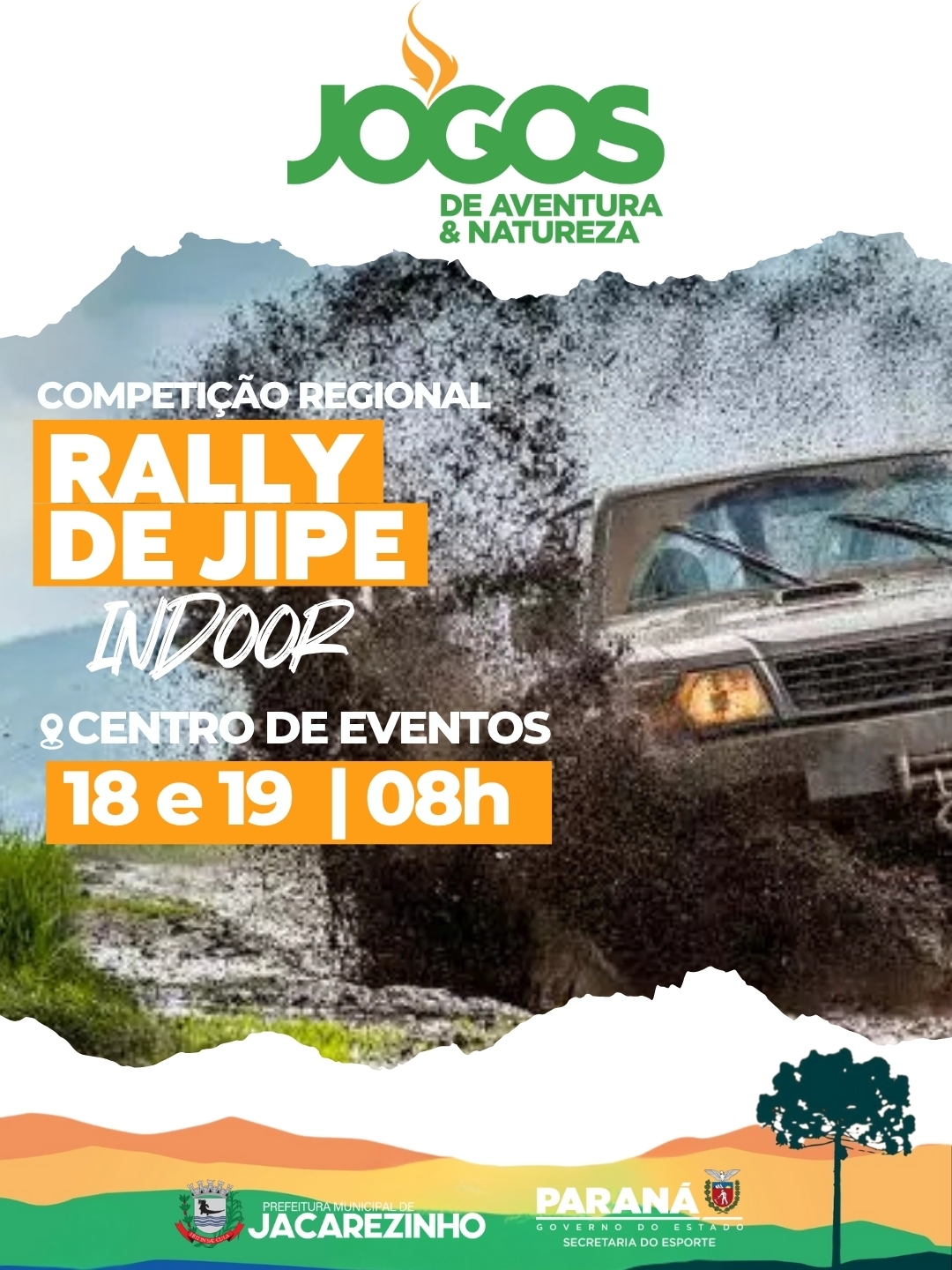 De 18 a 26 de outubro, Jacarezinho será sede de uma das etapas dos Jogos de Aventura e Natureza do Paraná, reunindo diversas modalidades esportivas e proporcionando momentos únicos de lazer, integração e emoção!