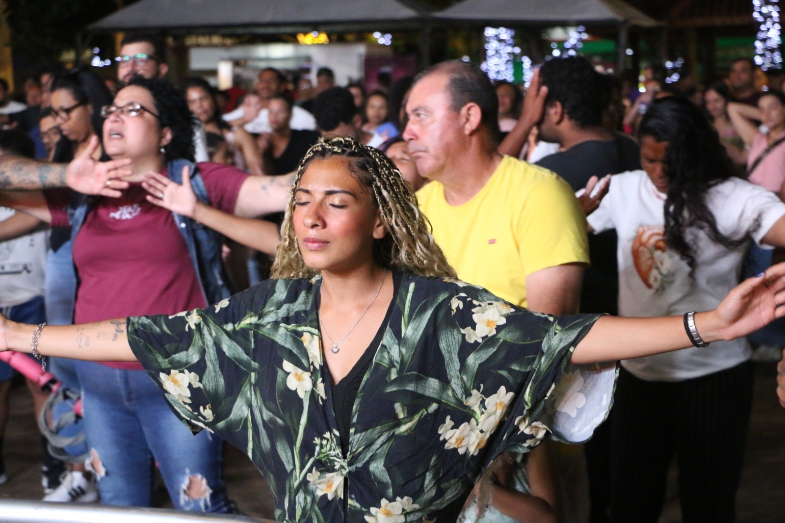 Logo após, a Praça Rui Barbosa se transformou em um grande palco de adoração, recebendo o show incrível da banda Filhos do Homem, que emocionou o público com uma noite inesquecível de louvor e celebração.
