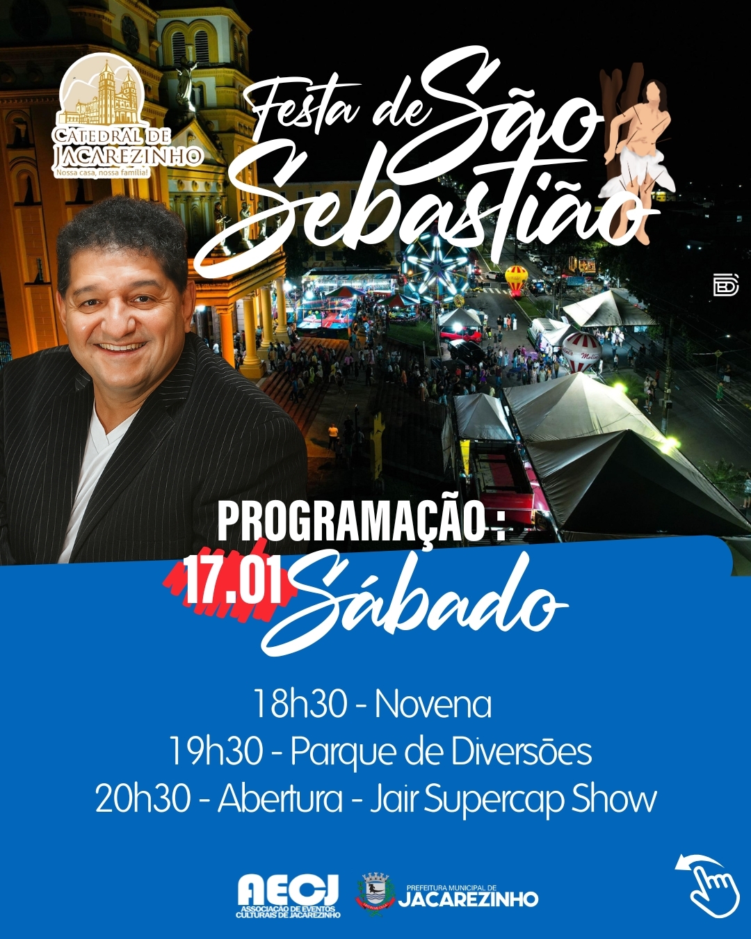 Jacarezinho se prepara para realizar um dos momentos mais importantes do seu calendário religioso e cultural, com a tradicional Festa de São Sebastião, padroeiro do município, que acontece entre os dias 17 e 20 de janeiro, na Catedral Diocesana de Jacarezinho. O evento reúne fé, tradição, lazer e grandes atrações, atraindo fiéis e visitantes de toda a região.