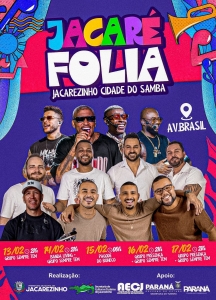 A Prefeitura Municipal de Jacarezinho divulga a programação oficial do Carnaval 2026 - Jacaré Folia, que promete dias de muita música, alegria e celebração da cultura popular, reunindo grandes atrações e valorizando o samba e o carnaval da cidade.