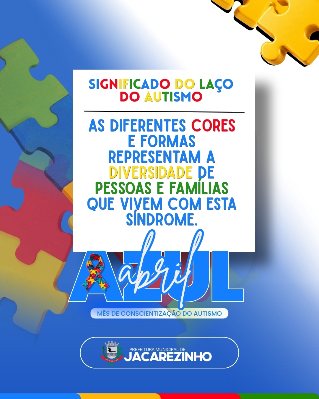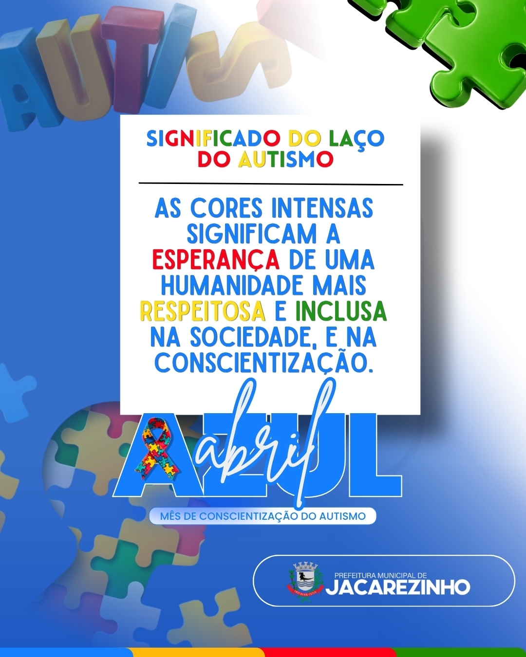 A Prefeitura de Jacarezinho reforça a importância da conscientização, do respeito e da inclusão das pessoas com Transtorno do Espectro Autista (TEA).
